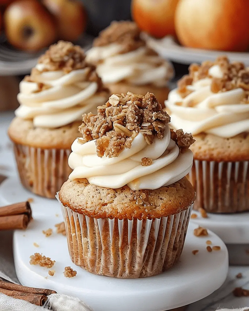 These cupcakes are not just delightful to eat; they are simple enough to whip up at home, making them a fantastic option for both seasoned bakers and kitchen novices. The best part? They’re incredibly versatile! You can easily adjust the toppings to suit your taste. Want a bit more crunch? Add chopped nuts to the crumble! Looking for a frosting twist? Cream cheese frosting can add a rich flavor that complements the apple perfectly.