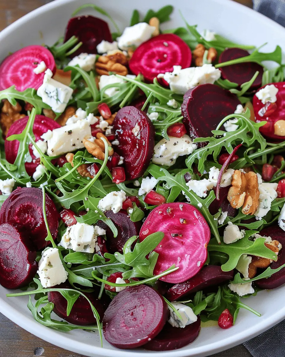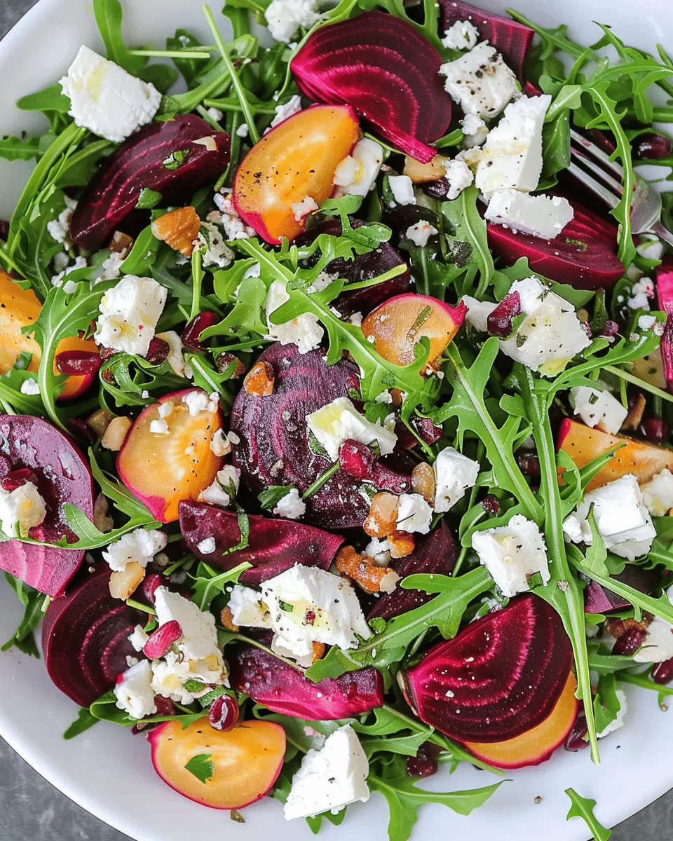 The Beet and Goat Cheese Arugula Salad is not just a feast for the eyes; it’s also a powerhouse of nutrition. Beets are rich in antioxidants and essential nutrients, helping to boost your immune system, while goat cheese adds a creamy texture packed with calcium. Arugula brings in a peppery flavor, making each bite exciting and refreshing.