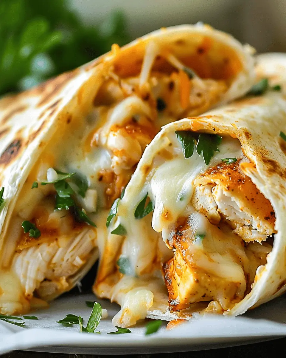 These cheesy garlic chicken wraps are not just a treat for your taste buds; they’re also perfect for sharing. Bring them to a gathering, or enjoy them as a comforting dinner after a hectic day.