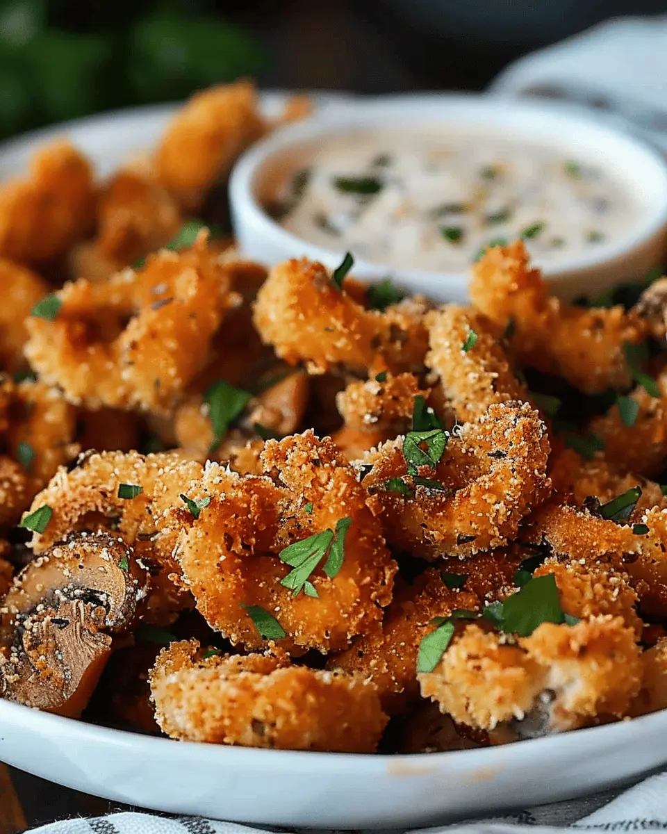 And there you have it—crispy ranch-breaded mushrooms that are bound to steal the show at your next gathering or movie night! Serve them hot, and don’t forget your favorite dipping sauces for that extra kick. Enjoy your tasty creation!