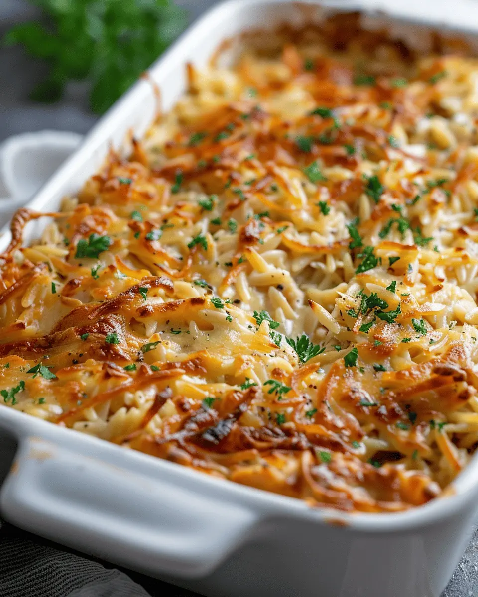 One of the best things about this casserole is its incredible flavor profile. Picture this: sweet caramelized onions mingling with savory chicken and the unique twist of orzo pasta. The result is a warm, inviting dish that feels like a warm hug, perfect for a chilly evening or a cozy family gathering.