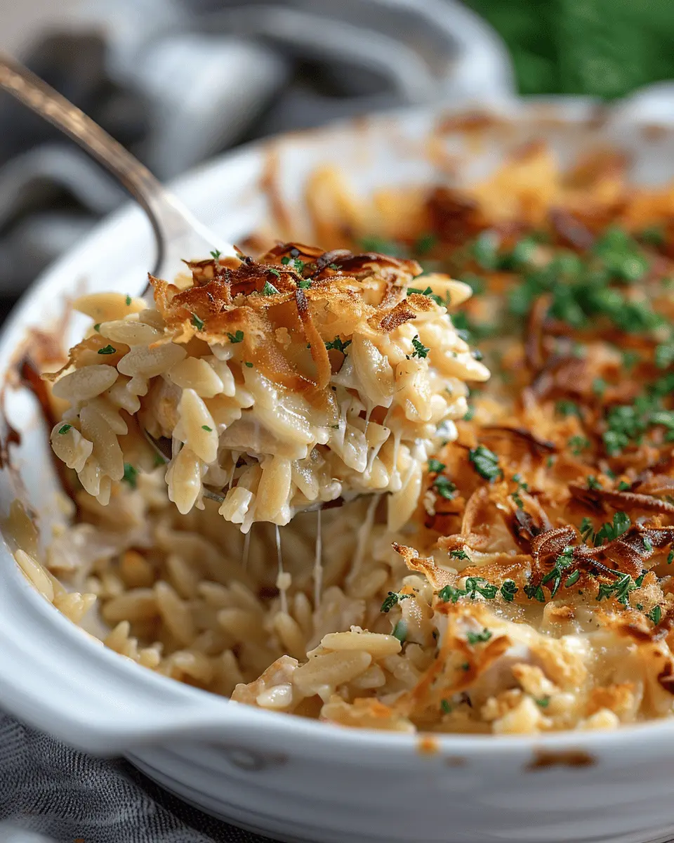 If you’re searching for a comforting yet delicious dish to brighten up your dinner routine, look no further than French Onion Chicken Orzo Casserole. This hearty meal combines the rich flavors of caramelized onions, tender chicken, and creamy sauces, topped off with gooey cheese. It’s a perfect dish whether you’re cooking for friends, family, or just for yourself after a long week. Let’s dive into the preparation!