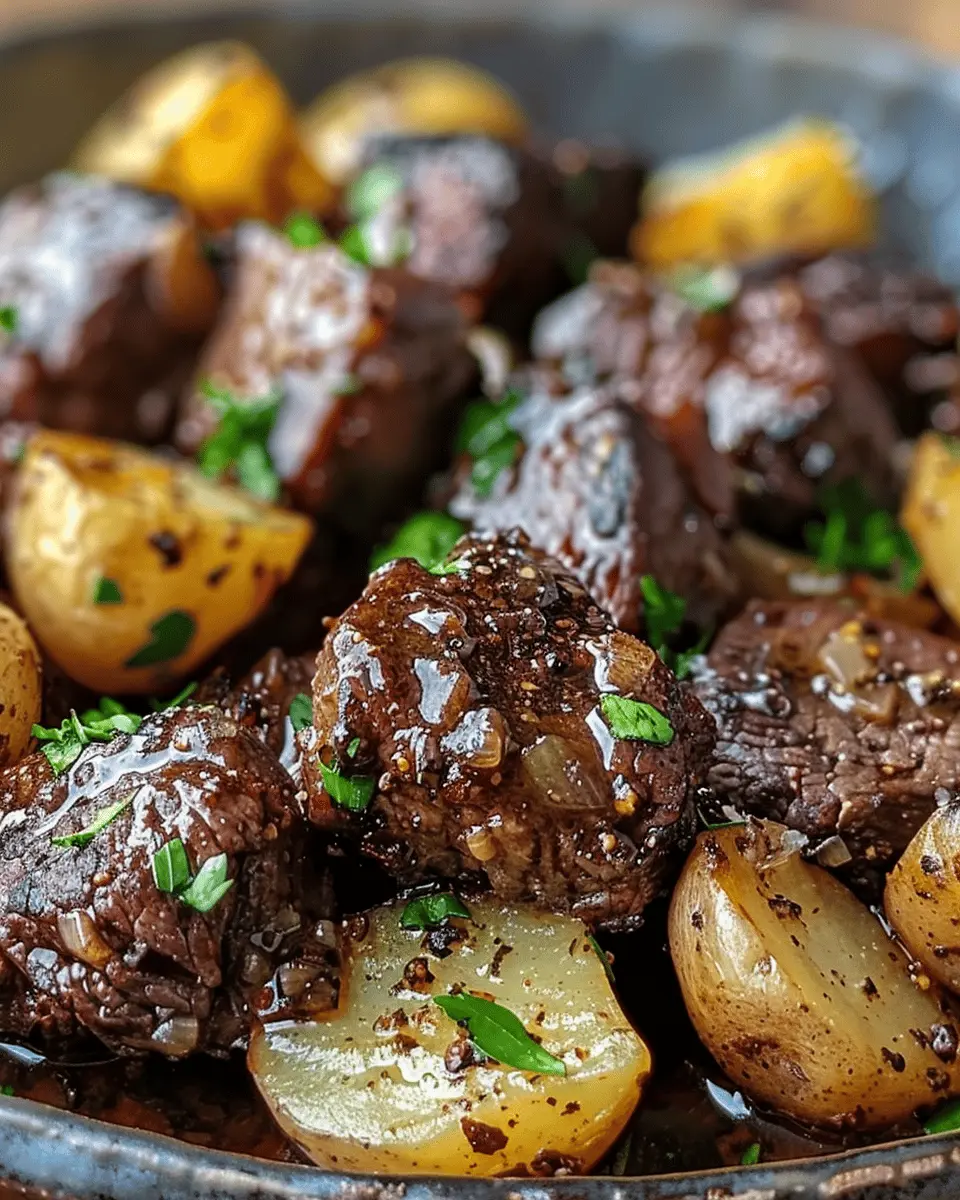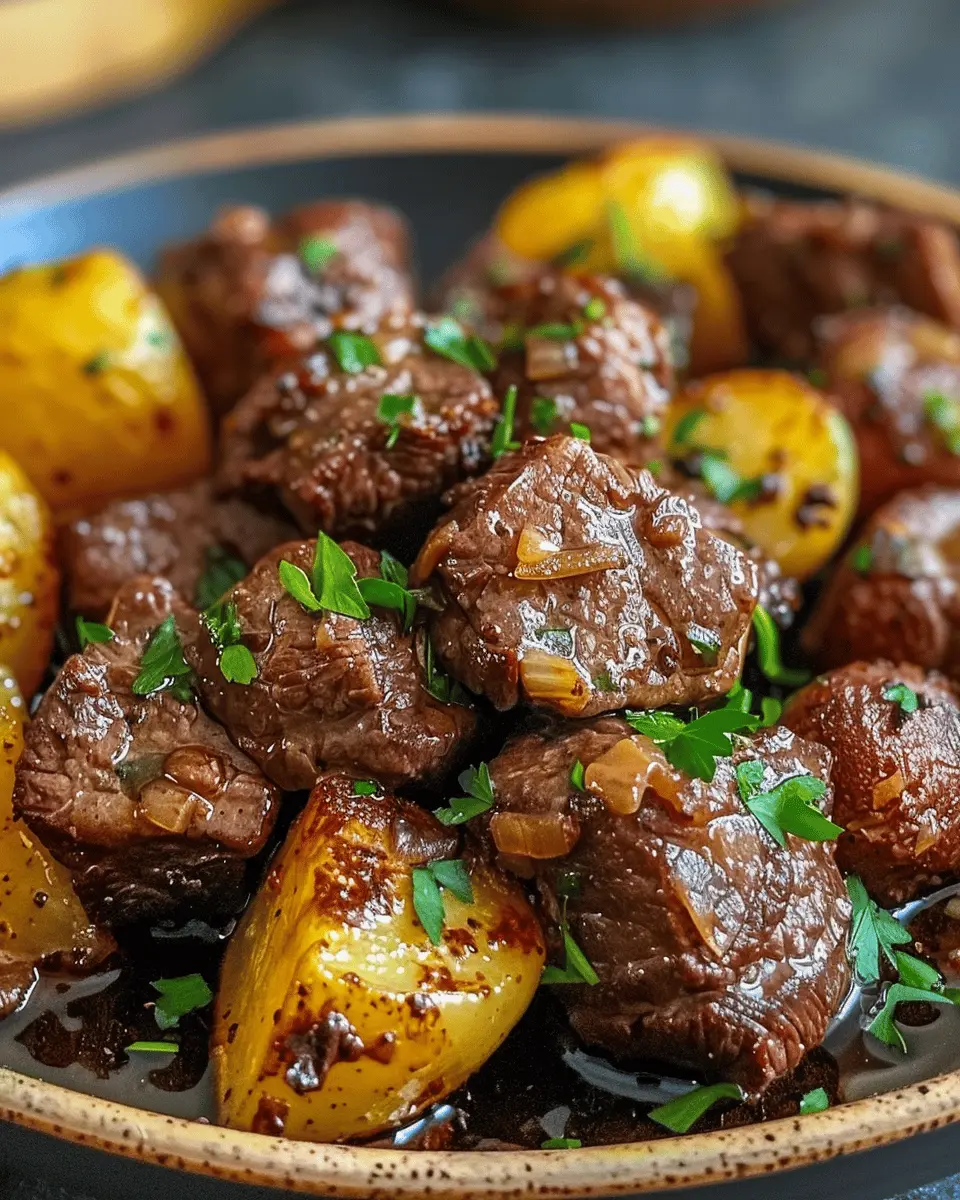 Garlic Butter Beef Bites: A Juicy Dinner with Potatoes