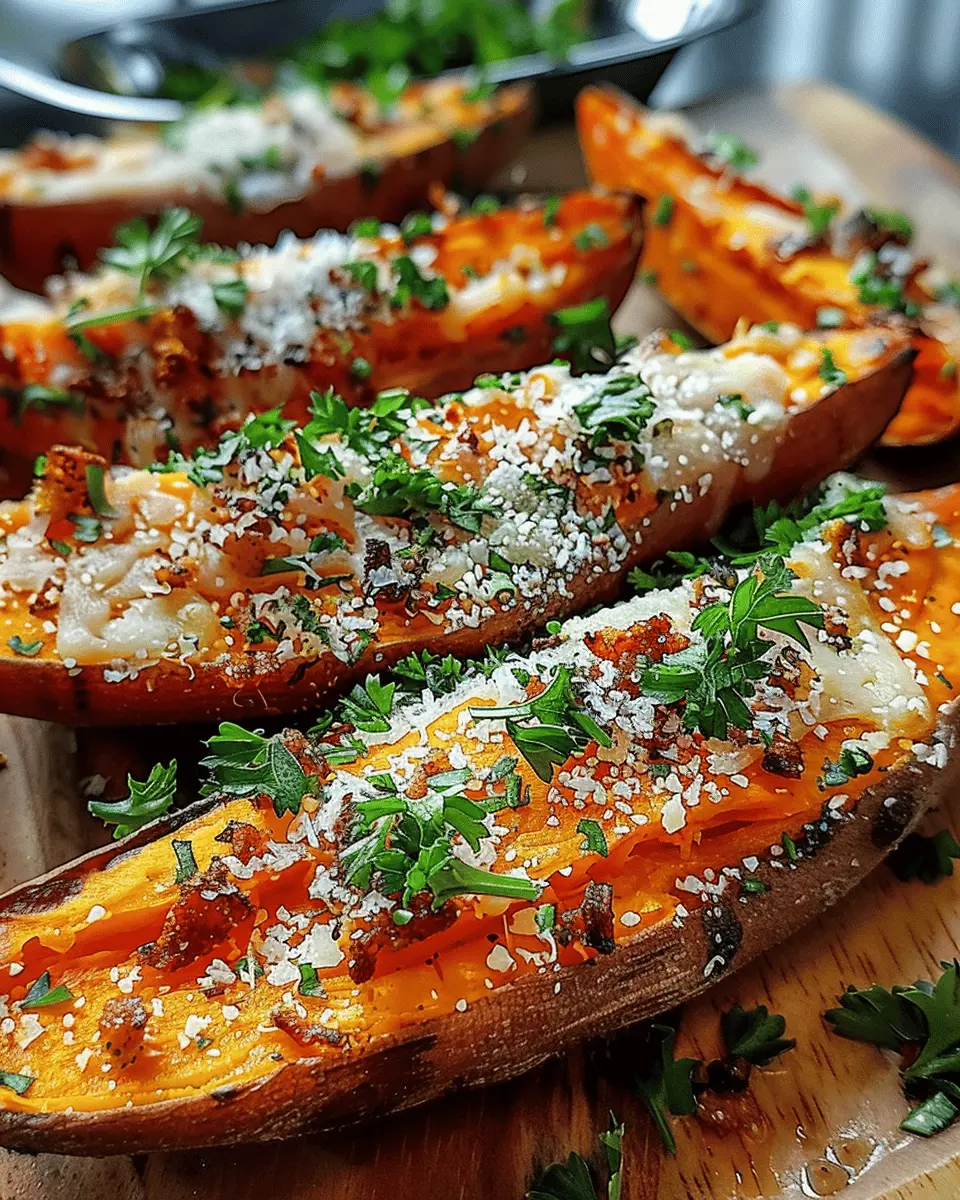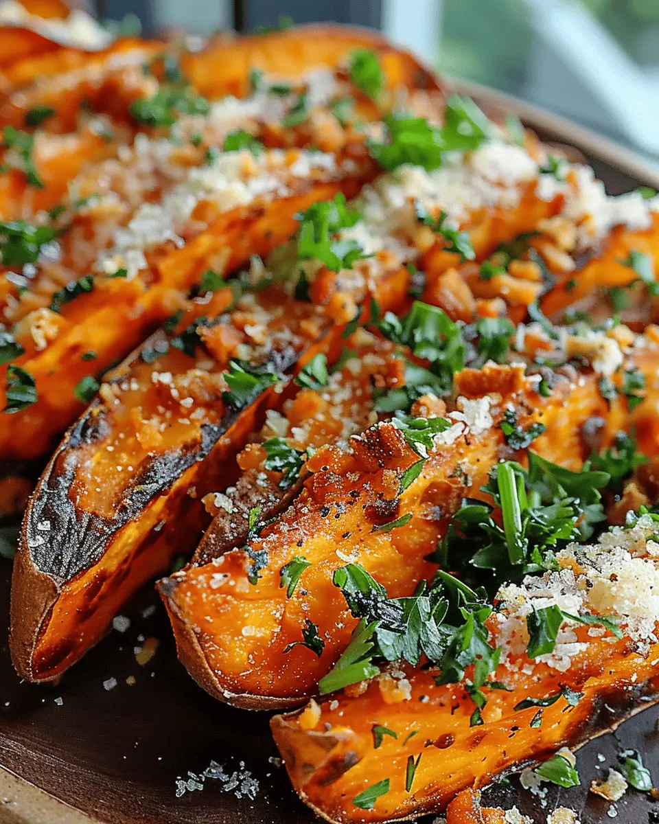 Spicy Garlic Parmesan Sweet Potatoes