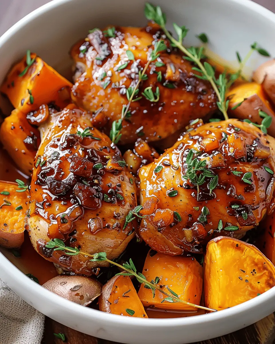 Discover the flavors of Maple-Glazed Chicken with Sweet Potatoes, a dish that brings sweetness and savory together for a delightful meal!