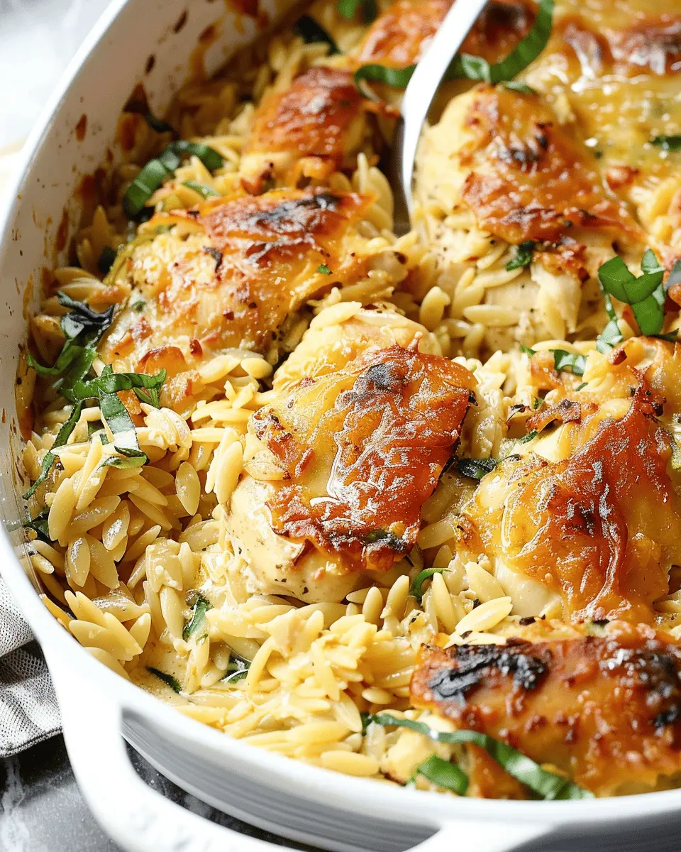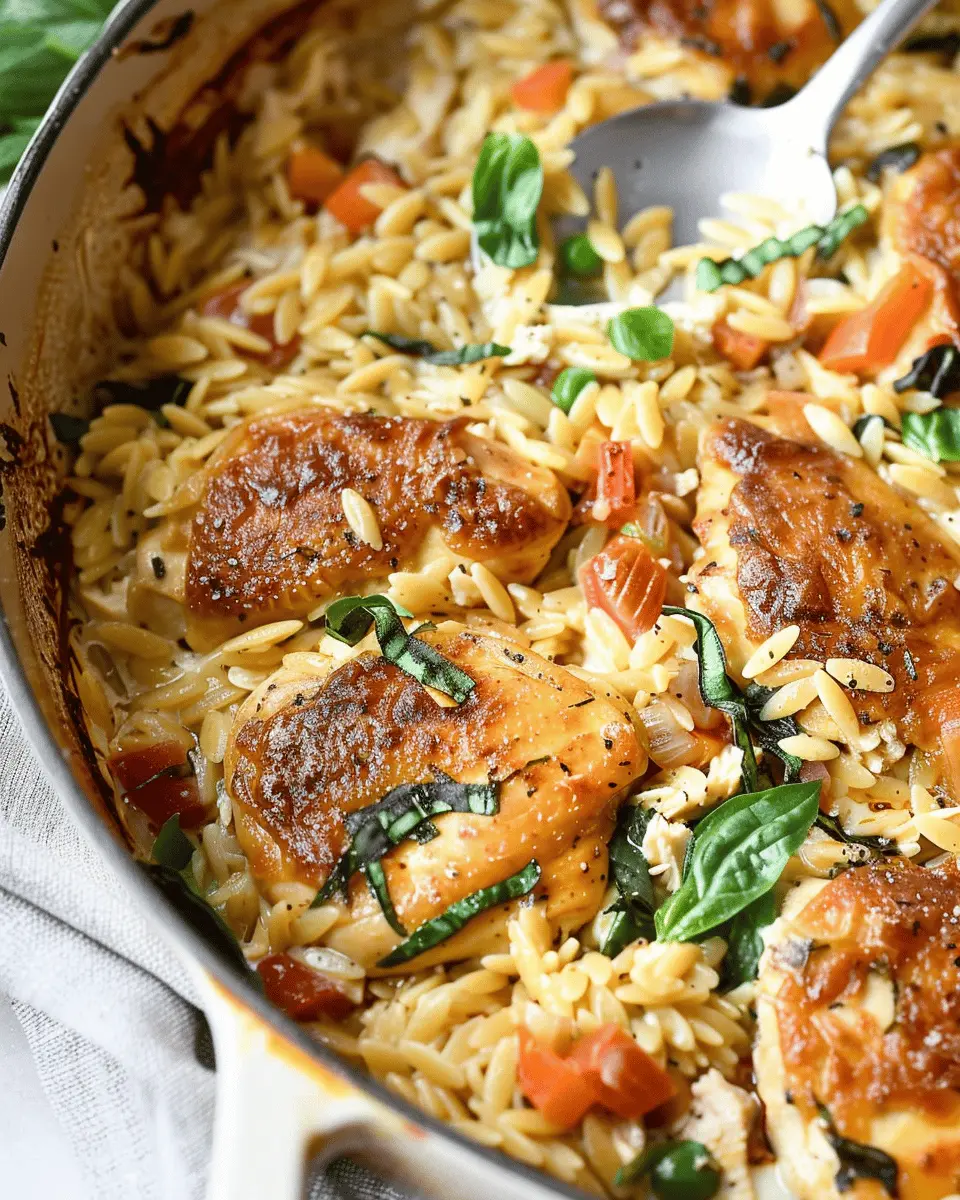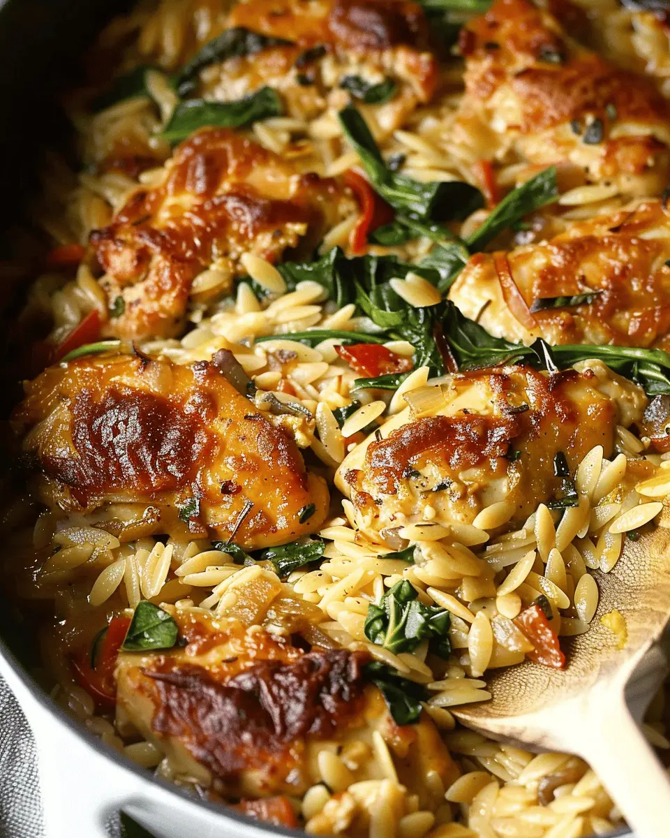 A delicious and easy weeknight meal that combines juicy chicken and flavorful orzo all in one pan.