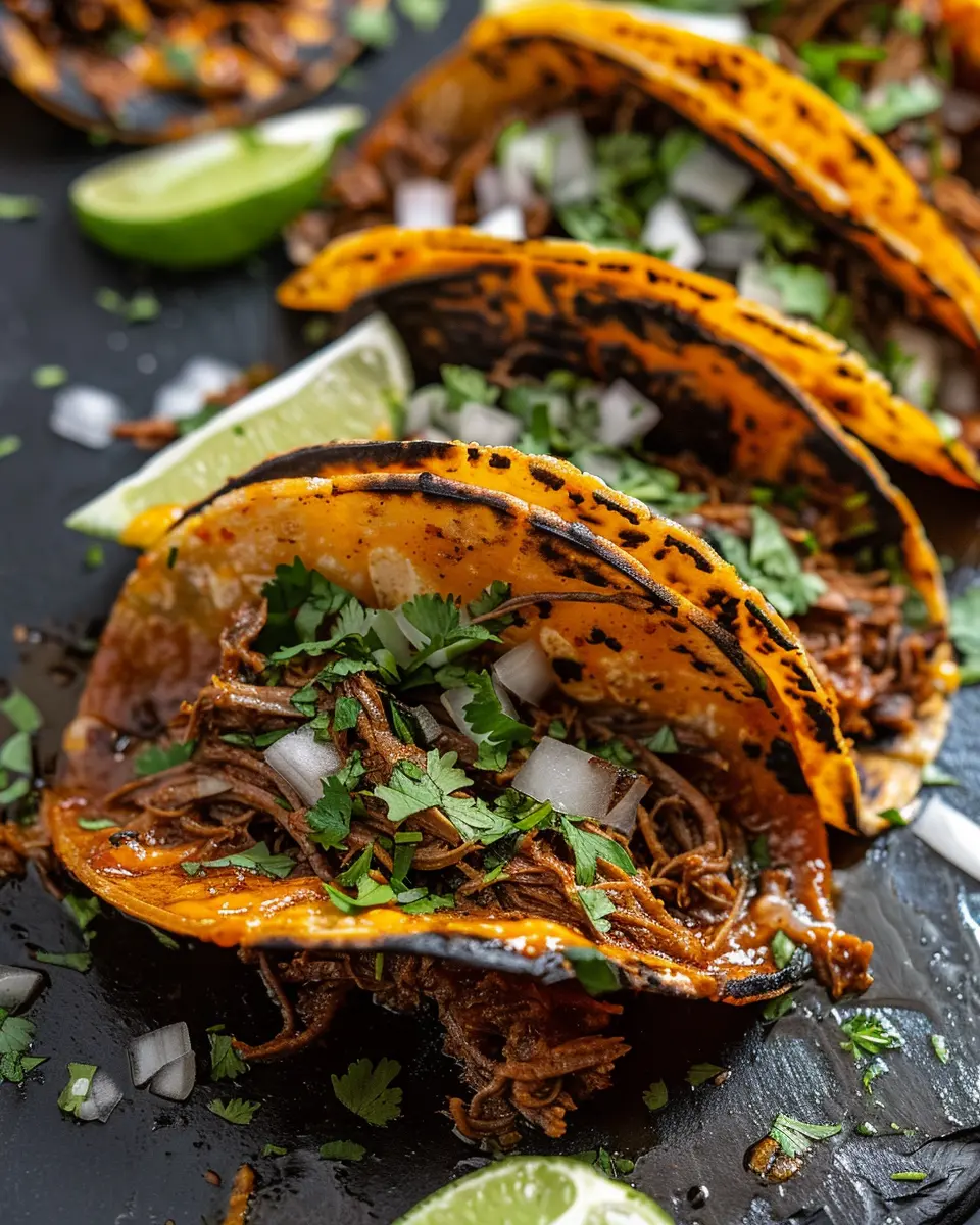 Start by shredding the beef and then snag a tortilla—warm it up in a pan for a few seconds on each side to make it pliable. Next, load it up with the tender beef, and top with freshly diced onions and cilantro. Don’t forget a squeeze of lime to brighten everything up! You can serve these tacos with a small bowl of that delicious consommé for dipping.