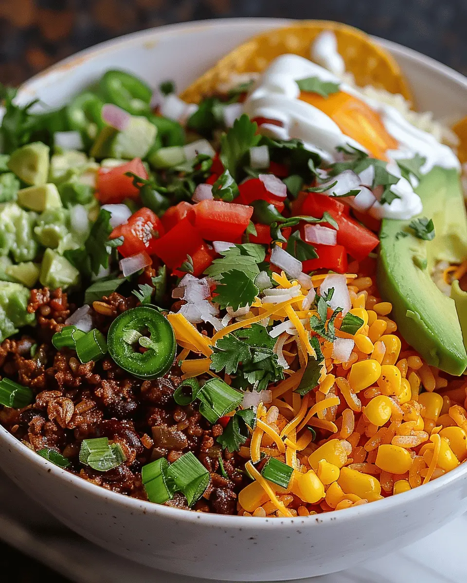 - Veggies: Fresh diced tomatoes, crunchy lettuce, and sliced red onions bring color and freshness to your dish. Don’t forget corn for a pop of sweetness!