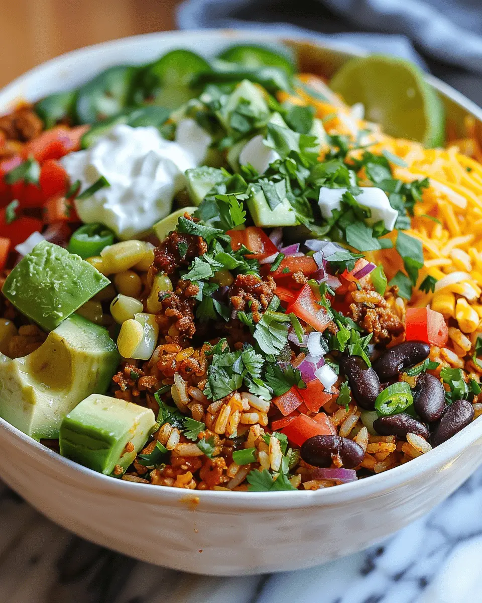 Fresh herbs can take your perfect taco rice bowl to the next level. Adding chopped cilantro not only enhances the flavor but also introduces an aromatic freshness that complements the other ingredients beautifully. A squeeze of lime juice provides a bright acidity, cutting through the richness of your bowl. Remember, using fresh ingredients makes a significant difference, so don’t shy away from splurging a little on quality produce!
