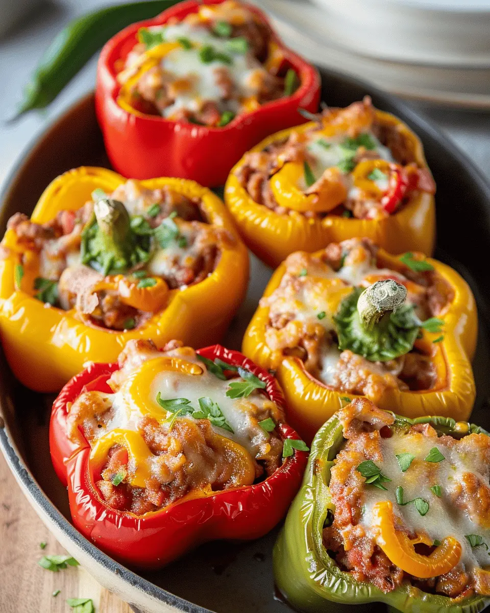 When you’re hosting, presentation makes all the difference! For an elegant touch, arrange the stuffed peppers on a large serving platter. Sprinkle some fresh herbs, like parsley or cilantro, around the plate for a pop of color.