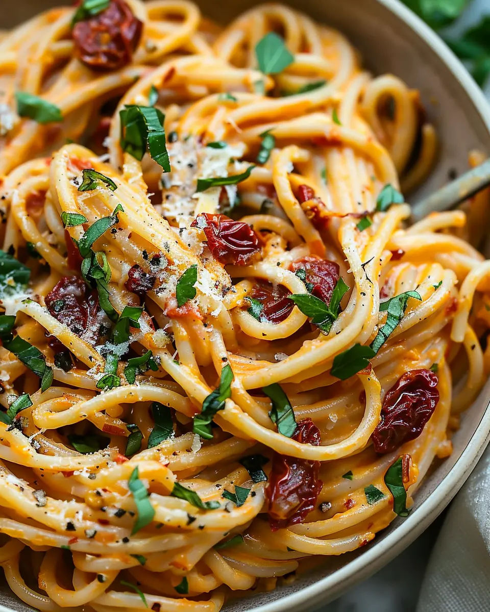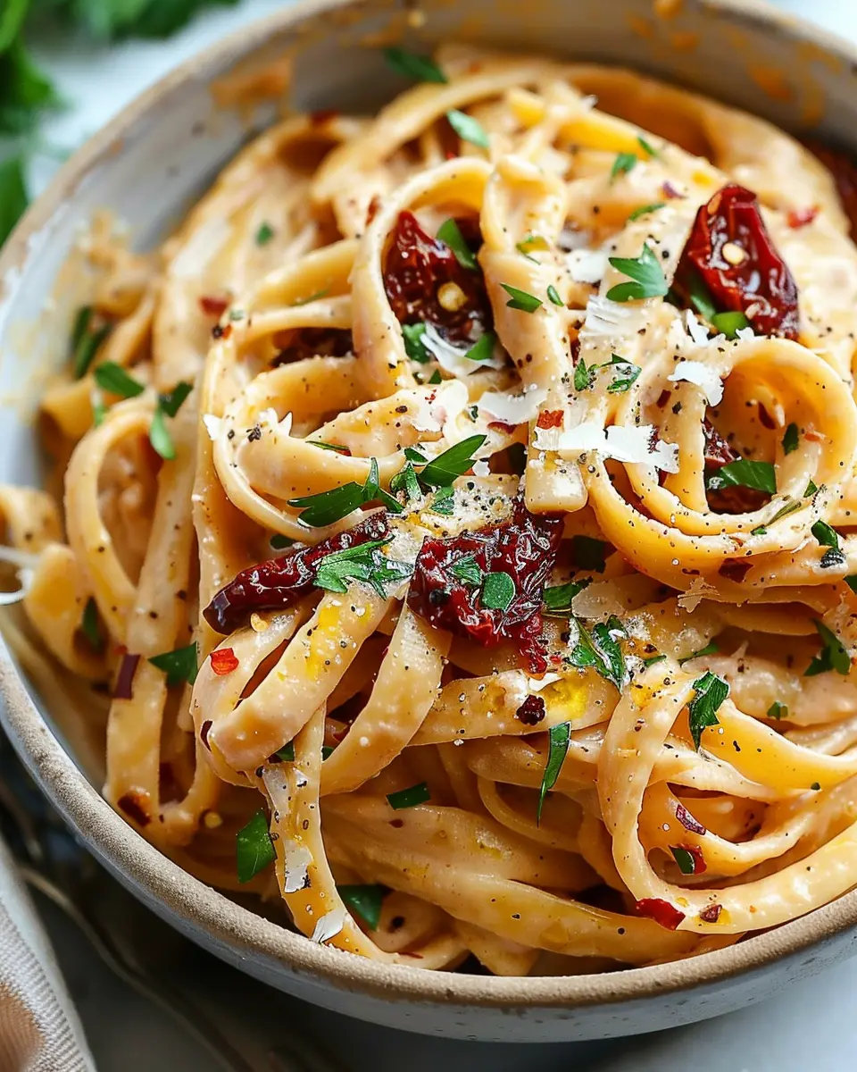 PrintVegan Creamy Sun Dried Tomato Pasta Recipe for Effortless Indulgence
